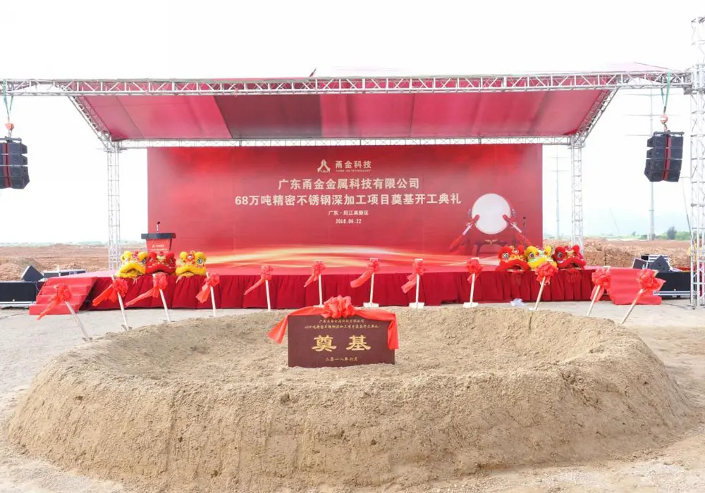 6月22日,在广东省阳江高新技术产业开发区港口工业园,广东甬金金属科技有限公司举行了“68万吨精密不锈钢深加工项目奠基开工典礼”。